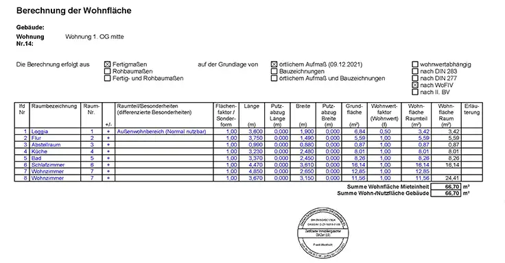 Wohnflächenberechnung durch einen Sachverständigen